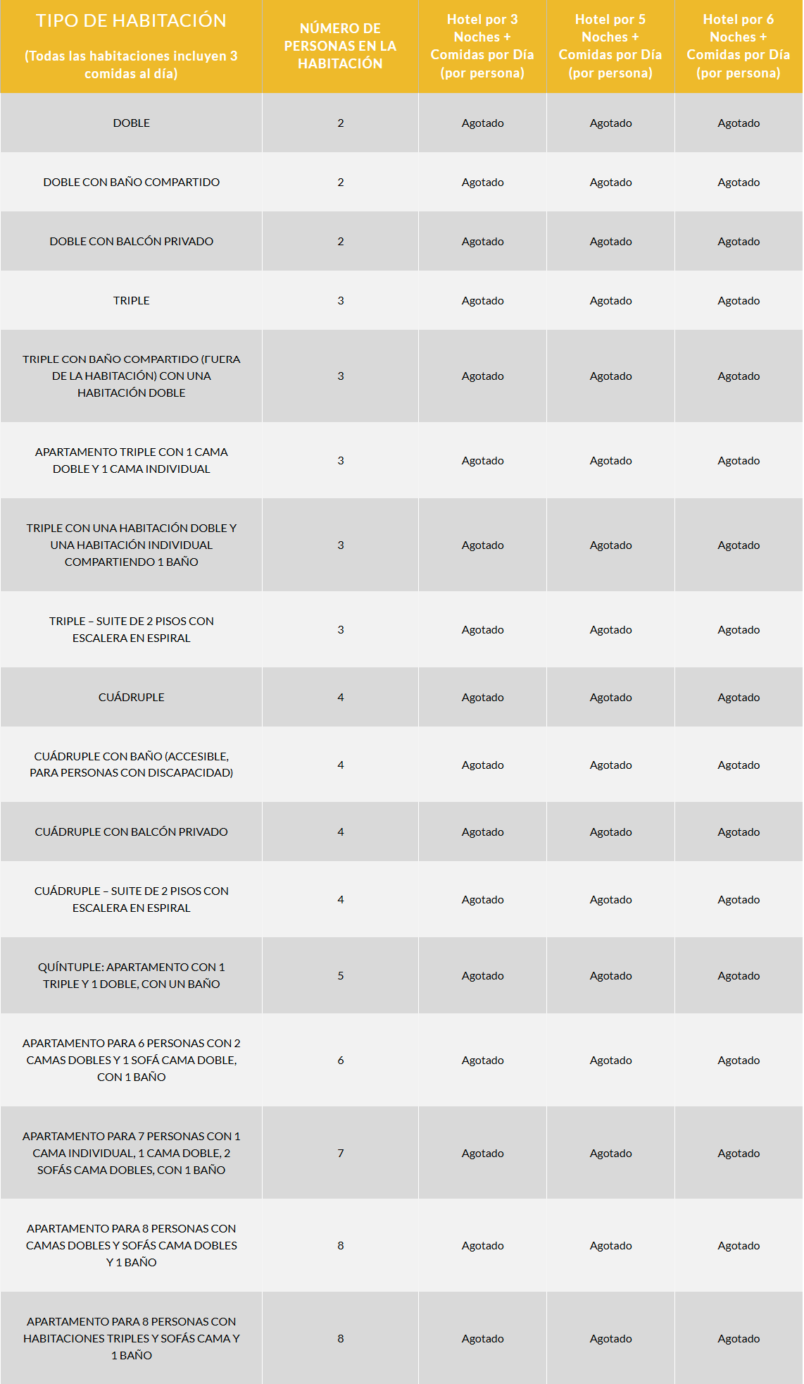 *El precio de la habitación es más el 10% de IVA. El hotel se puede pagar en 1, 2 o 3 plazos. El pago final debe realizarse antes del 15 de julio.