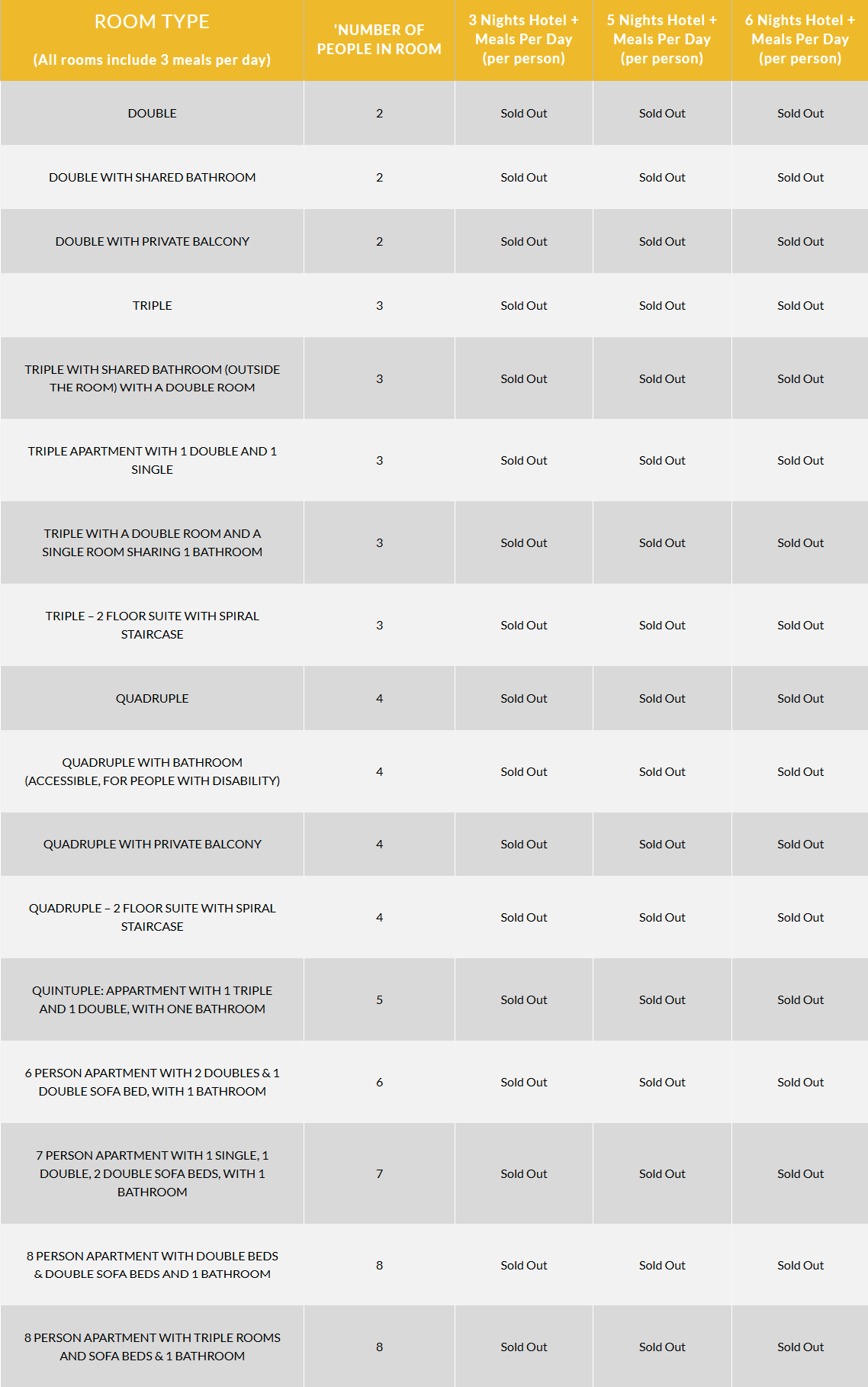 (All rooms include 3 meals per day)
